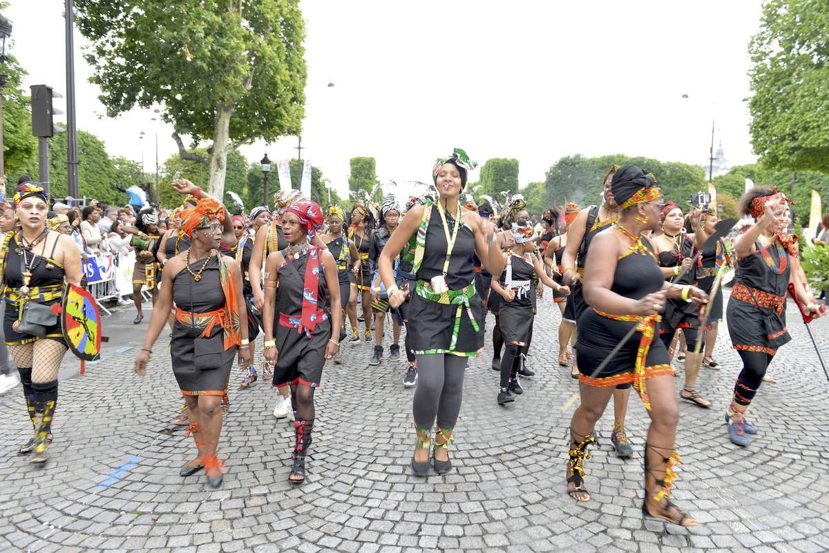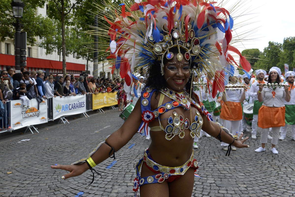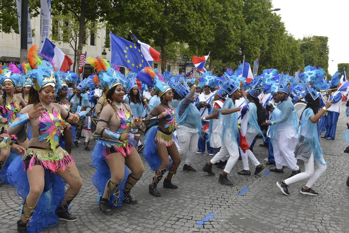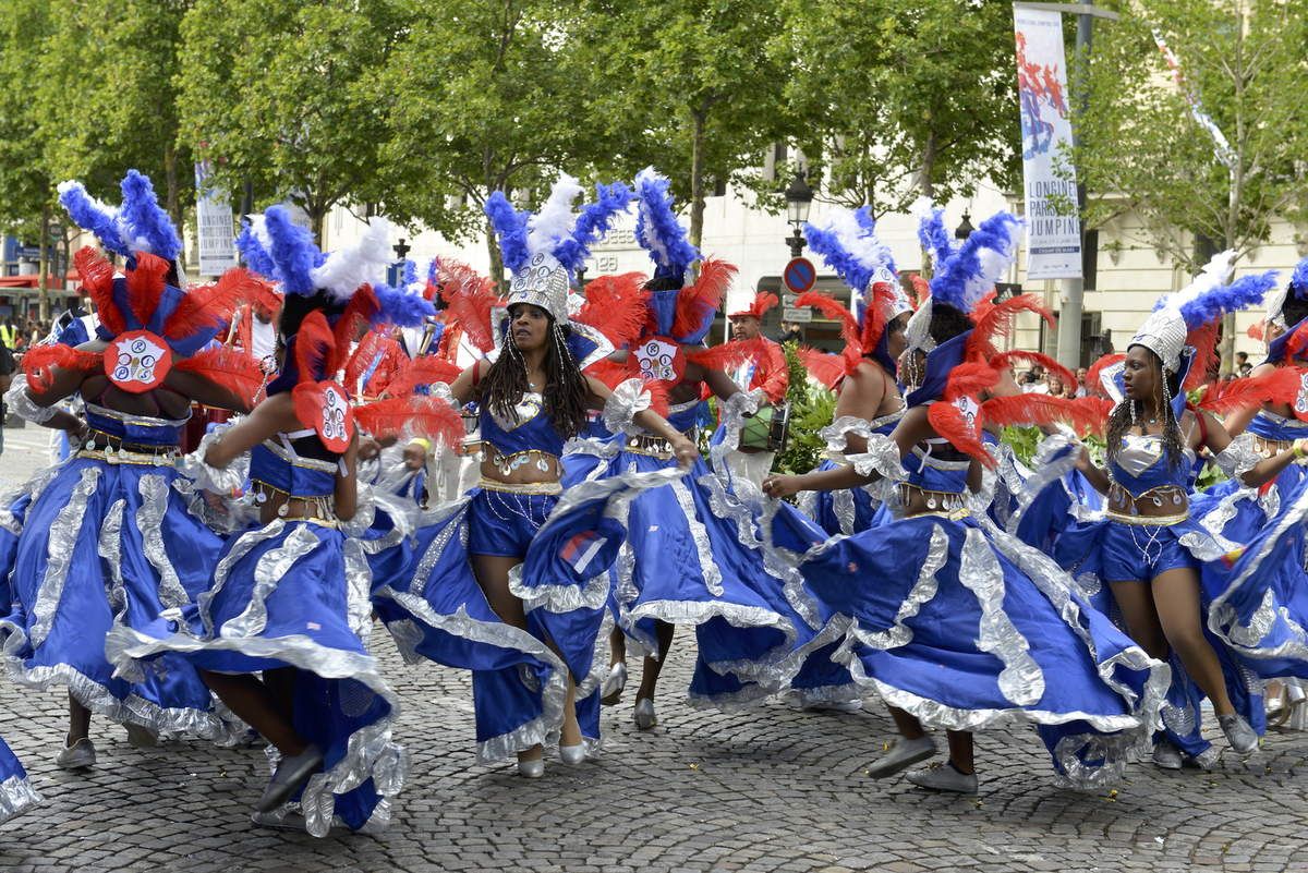 Dimanche 2 juillet, le 16e édition du carnaval tropical de Paris a rassemblé des milliers de personnes venus sur "la plus belle avenue du monde" pour regarder, admirer, photographier, filmer, les costumes aux couleurs de l’olympiade de cultures. Une trentaine de groupes venus de Guadeloupe, de Martinique, d’Haïti, d’Indonésie, du Pérou, de la Colombie, de la Guyane, de Strasbourg, de la Bolivie et d’ailleurs ont défilé sur une parcours prestigieux partant du rond-point des Champs Elysées, jusqu'à l’arc de Triomphe pour finir devant les membres du jury situé au bas de la plus belle avenue du monde. Beaucoup de sportives et sportifs d’outremer, au premier rang desquels, la présidente du jury Mélia Métella qui a profité de la prestation du groupe Sinnamary pour danser quelques pas avec les touloulous.