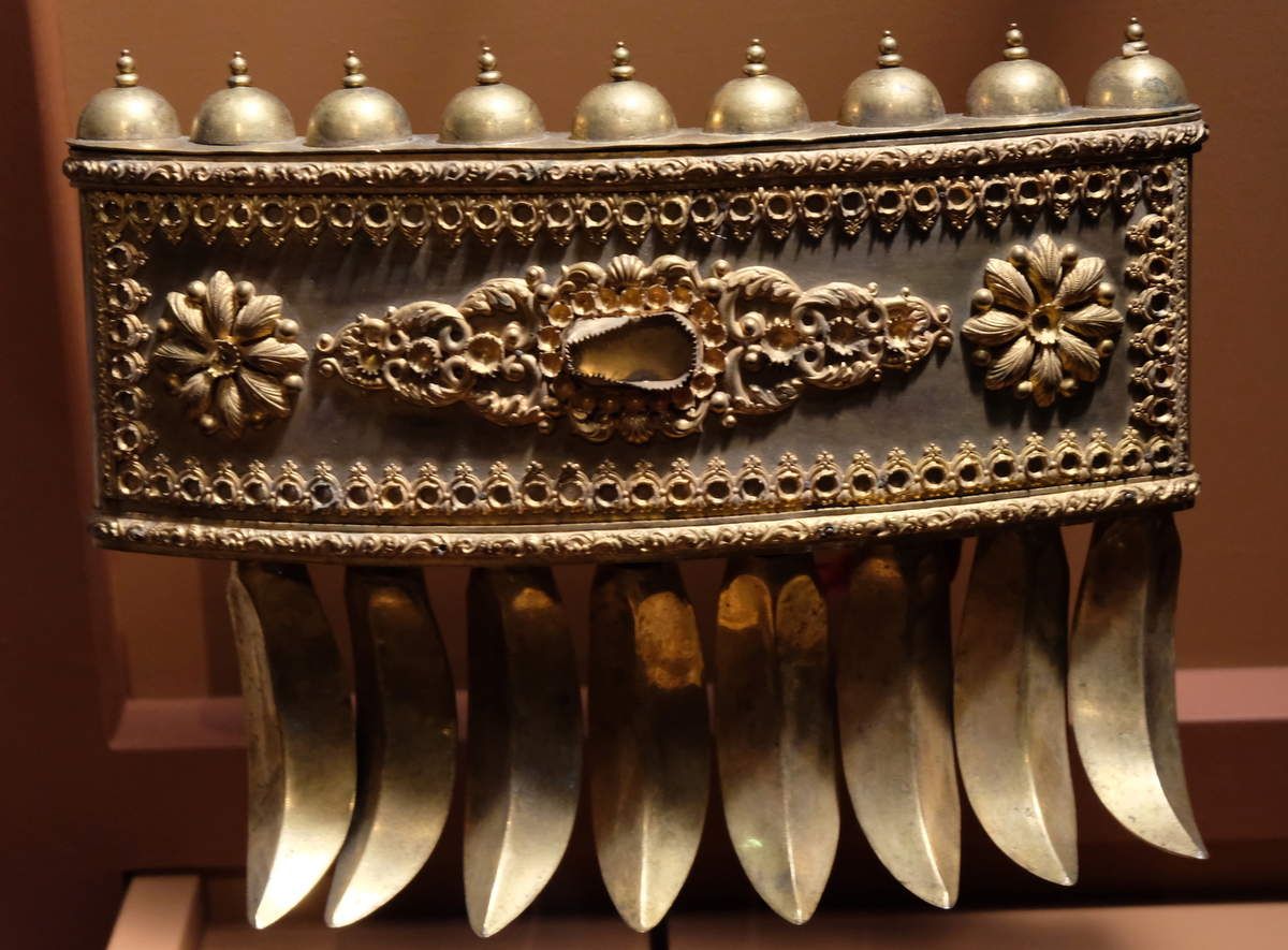 La deuxième partie de l'exposition s'intéresse au mode des vivants, à l'architecture domestique, aux ornements des objets utilitaires ou purement décoratifs, aux objets du sacré comme du profane, la vannerie, les bijoux, les étoffes (du châle au linceul), les coiffes et, bien sûr les instruments de musique. Les ornements en argent apparaissent tardivement, vers le 16e siècle, quand les Portugais et les Espagnols, via les Arabo-Swalihis, l'apportent comme moyens d'échange dans cette région.
